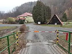 Budovy na pravém břehu řeky Bystřice patří chatařům.[4]
