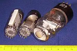 Tato úvaha vedla konstruktéry firmy Telefunken k zavedení nového typu elektronky, totiž kombinace magického oka s pentodou s proměnnou strmostí (selektodou). Řídicí elektrody, určující velikost výsečí na stínítku oka, byly tentokrát spojeny se stínicí mřížkou pentodového systému, a napětí těchto elektrod bylo určováno spádem na jejím zatěžovacím odporu. Telefunken tuto kombinovanou elektronku vyráběl ve své "harmonické serii" pod označením EFM11, firma Philips pak obdobnou elektronku nabízela ve své "rudé serii" pod označením EFM1.