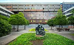 Budova má půdorys nepravidelného písmene H, je orientována zhruba východ-západ. Jedna část směřuje na Lidické náměstí, druhá na nádvoří, které bylo v roce 1985 uzavřeno přístavbou podle návrhu architekta Rudolfa Bergra.[6]