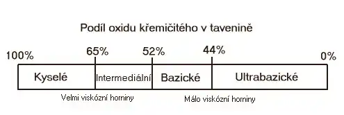 - Výlevné (extruzivní, efuzivní) horniny – To jsou horniny, které jsou díky nízké viskozitě dobře pohyblivé a dosáhnou rychle zemského povrchu. Tam se rozlévají v podobě lávy. Je pro ně typické rychlé chladnutí, způsobené okolním chladným prostředím (voda, vzduch atd.). Vznikají tak typické jemnozrnné až sklovité struktury.