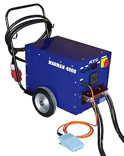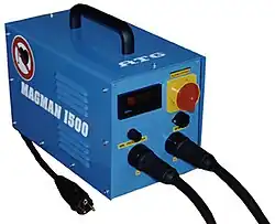 Používají se především na stavbách, montážích a při kontrolách ve výrobě materiálu, využití však nacházejí i v řadě dílenských kontrol. Jsou to v principu transformátory, které umožňují transformovat síťové napětí na hodnoty 4÷10 V. Zdroje běžně dodávají proud střídavý a/nebo jednocestně usměrněný, s intenzitou cca do 2 kA. K magnetizaci se využívají flexibilní kabely ve spojení s přiloženými elektrodami, proud se zapíná spínačem v rukojeti jedné elektrody po jejich přiložení na zkoušený materiál.