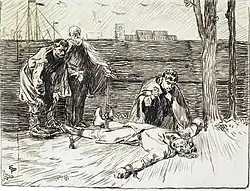 ![]() Úvodní list ze ságy Magnuse Slepého a Haralda Gilleho, Heimskringla, 1899. | |
