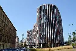 Jedná se o třináctipodlažní budovu, 10 podlaží má nad zemí, 3 pod zemí.[1] Má pronajímatelnou plochu 22 000 m² a celkovou užitnou plochu 36 000 m². Při navrhování byl kladen důraz na úspornost budovy a vliv na životní prostředí. Nejvýraznější architektonický prvek je samotný organický tvar budovy. Celá fasáda pravidelně střídá oranžovo-šedo-bílé fasádní pilíře, fungující i jako slunolamy, a francouzská okna. Budova je chlazena za pomoci říční vody, která protéká kanálem ve 2. suterénu.[2] Pod objektem se nachází parkování s kapacitou cca 350 míst. Na střeše se nachází menší zahrada.