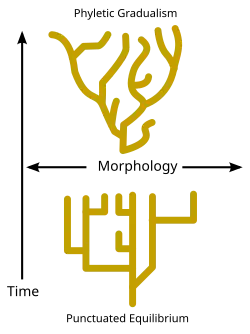 Dlouhodobě diskutovaným tématem evoluční biologie a paleontologie je snaha vysvětlit skutečnost, že druhy se ve fosilním záznamu často objevují náhle, nevykazují žádné významné anagenetické změny a náhle z fosilního záznamů také mizí, přičemž obvykle bývají nahrazeny jinou, často příbuznou formou.[3] Paleontologové, již odmítali evoluční význam těchto pozorování a zastávali tzv. model gradualistické evoluce (= postupující větší či menší rychlostí během celé existence druhu), vysvětlovali tento fenomén neúplností fosilního záznamu. Podobný pohled zastával i samotný Darwin.[3] V opozici s gradualistickou evolucí vystupuje model evoluce punktuacionalistické, podle níž druhy nabývají svého specifického fenotypu velmi rychle po speciaci a následně se během své existence téměř nemění (období „stáze“).[1] Teorie nespojitého průběhu anageneze je většinou spojována se jmény Nilese Eldredgeho a Stephena Jaya Goulda jako teorie přerušovaných rovnováh (1972).[7]