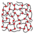 Prostorově síťovanéprostorově síťované uspořádání - vzniká také polymerizací sloučenin s trojnými vazbami. Místo bočních řetězců dochází k prostorovému propojení. Takový materiál je pak při slabém zesílení pružný a tažný, při velkém zesílení tvrdý, netavitelný a nerozpustný (například reaktoplasty).