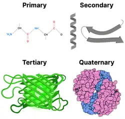 Struktura bílkoviny - od primární, sekundární, terciární až po kvartérní