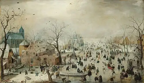 Baltské moře zamrzlo dvakrát, v letech 1303 a 1306–1307, a následovaly roky „nezvyklých mrazů, bouří a dešťů a zvýšení hladiny Kaspického moře“. Malá doba ledová přinesla chladnější zimy do některých částí Evropy a Severní Ameriky.[25] V polovině 17. století byly farmy a vesnice ve švýcarských Alpách zničeny zasahujícími ledovci,[26] kanály a řeky ve Velké Británii a Nizozemsku často zamrzaly dostatečně hluboko, aby se na nich dalo bruslit a pořádat zimní slavnosti,[27] první mrazivá pouť na Temži se konala v roce 1608 a poslední v roce 1814. Změny mostů a dostavba nábřeží Temže ovlivnily průtok a hloubku řeky a výrazně snížily možnost dalšího zamrzání.[27][28]