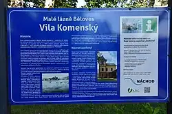 - ↑ a b c Malé lázně Běloves – Vila Komenský. cs.wander-book.com [online]. [cit. 2024-06-04]. Dostupné online.