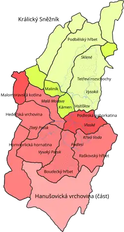 - ↑ Břetislav Balatka, Jan Kalvoda - Geomorfologické členění reliéfu Čech (Kartografie Praha, 2006, ISBN 80-7011-913-6)