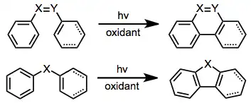 Je-li přítomno oxidační činidlo, tak mohou být cyklizované produkty zoxidovány za aromatizace kruhů; například dihydrofenanthren se mění na fenanthren. Nejčastějšími oxidanty jsou kyslík a jod.