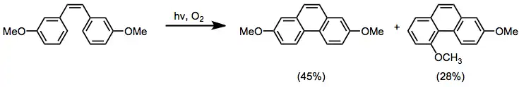 Fotocyklizace lze provést u ortho-, meta-, i para-substituovaných stilbenů. Ortho-substituované substráty obecně vytvářejí 1-substituované fenanthreny, výjimka nastává tehdy, když je substituent dobrou odstupující skupinou, pak dochází k eliminacím za vzniku nesubstituovaných fenanthrenů.[11] Meta- substituované substráty vytvářejí směsi 2- a 4-substituovaných produktů.
