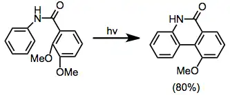 Při působení ultrafialového záření stilbeny a jejich deriváty procházejí vnitromolekulárními cyklizacemi za vzniku dihydrofenanthrenů. Za přítomnosti oxidačních činidel se tyto dihydrofenanthreny aromatizují na polycyklické produkty. Samotné dihydrofenanthreny jsou většinou nestabilní a za nepřítomnosti látek zachytávajících vodík se mění na cis-stilbeny. Vhodně substituované stilbeny mohou za nepřítomnosti oxidantů procházet nevratnými rearomatizujícími eliminacemi nebo [1,n]-posuvy. Do těchto reakcí mohou vstoupit i arylenyny,[4] heteroatomické deriváty stilbenů (například amidy[5]) a substráty obsahující jeden heteroatom nahrazující uhlík na dvojné vazbě stilbenu.[6]