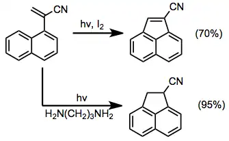 I pětičlenné cykly lze vytvořit fotocyklizacemi. U vinylnaftalenů mohou probíhat oxidačně[10] i neoxidačně; neoxidační ale vyžadují katalyzátor přenosu protonů.[15]