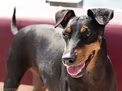 Je kompaktní a velmi elegantní a přesto atleticky stavěné, celkově dobře osvalené a s jemnou konstrukcí a celkově i lehkou kostrou. Malé, až střední velikosti. Srst velmi dobře přiléhá, je krátká, na dotek hebká a velmi dobře kryje před vodou i chladem. Zbarvení srsti je charakteristické i pro dobrmany; je to černá s hnědým pálením. Na krku nevytváří límec a na ocase prapor.