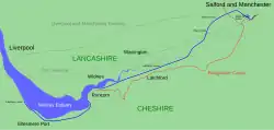 Kanál měří 58 km a spojuje doky v Salford Quays s Easthamem v ústí řeky Mersey. Vede přes hrabství Cheshire a Lancashire. Překonává převýšení 18 metrů a nachází se na něm pět zdymadel.[3] Lodě musejí mít maximální délku 180 metrů a šířku 20 metrů. Maximální hloubka kanálu dosahuje 7,9 m.