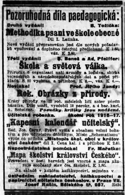 - ↑ Národní politika. 23. 9. 1916, s. Příloha, s.2. Dostupné online.