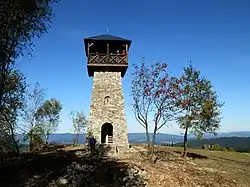 Od roku 2011 stojí na vrcholu 14 m vysoká rozhledna Zákopčie.