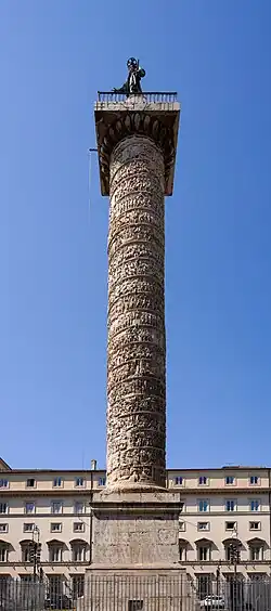 Za Markova vládnutí bylo vybudováno jen nevelké množství význačných monumentů, v čemž se zřetelně odlišil od mnoha svých předchůdců. Na počest Antonina byl vybudován sloup na Martově poli, jehož ústředním motivem byla apoteosa zemřelého císaře a jeho manželky Faustiny starší. Podstavec tohoto sloupu je nyní vystaven ve Vatikánských muzejích. Markovy a Verovy válečné úspěchy byly v Římě oslaveny celkem třemi vítěznými oblouky. Samotnému Markovi byly určeny dva z nich, žádný se ovšem nedochoval do dnešních dnů. Pouze některé pravoúhlé reliéfy byly využity při tvorbě Konstantinova oblouku. Zřejmě nejvěhlasnější stavbou připomínající Markův principát se stal sloup, jenž se tyčí na náměstí Piazza Colonna. Na tomto díle jsou vyobrazena Markova tažení proti Markomanům a Sarmatům v letech 172 až 175. Na jednom z vlysů je zachycena událost známá jako „zázračný déšť v zemi Kvádů“, při níž podle římského líčení vyslyšel bůh císařovy modlitby a sesláním bouře odvrátil nebezpečí, hrozící obklíčeným římským vojákům. Nejslavnější zpodobnění Marka Aurelia představuje jeho bronzová jezdecká socha, v období renesance vystavená Michelangelem na náměstí Piazza del Campidoglio na římském Kapitolu. V současnosti se zde nachází replika, zatímco originál je umístěn v Kapitolských muzejích. Tato socha je znázorněna i na italské versi padesáticentové euromince.