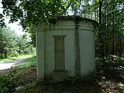 Kaple má čtvercový půdorys s půlkruhovým závěrem. Na bocích má pilastry, na průčelí zdvojené lizény. Vstup je půlkruhově sklenutý a nad ním je trojúhelníkový štít, v němž je reliéfní štukový kříž. Uvnitř síně je valená klenbička. Uprostřed severní stěny je vestavěn sloupek původních božích muk, vystupující navenek.[2]
