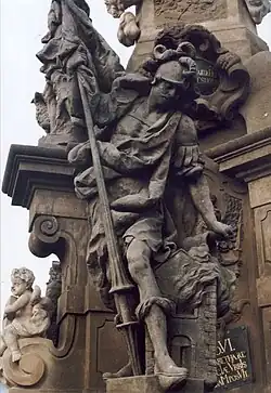 - ↑ a b sloup se sochou Panny Marie a sochami světců - Památkový Katalog. www.pamatkovykatalog.cz [online]. [cit. 2024-06-25]. Dostupné online.