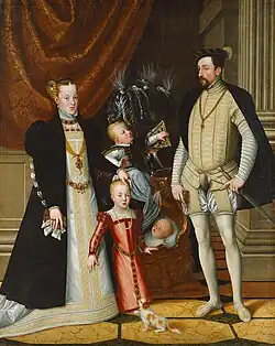 - Alžběta (5. července 1554 – 22. ledna 1592), ⚭ 1570 Karel IX. (27. června 1550 – 30. května 1574), francouzský král od roku 1560 až do své smrti