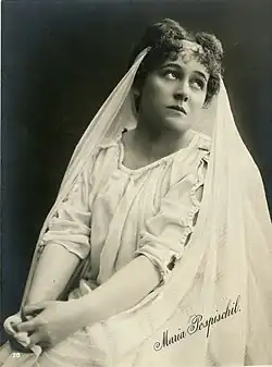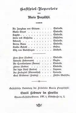 - ↑ a b Jaroslav Kvapil, Pohostinské hry slečny Marie Pospíšilovy. In. Zlatá Praha 1895, Nr. 26, P. 312).