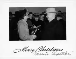 - ↑ a b Marion Carpenter, 82; Photographed Truman. The Washington Post. Washington Post Newsweek Interactive Co., 2002-11-26. Dostupné v archivu pořízeném z originálu dne 2014-06-11. (anglicky) Archivováno 11. 6. 2014 na Wayback Machine. Article archived by HighBeam Research Archivováno 31. 3. 2002 na Wayback Machine. as of 2009-05-25.