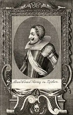 - ↑ a b c Adam Wacław * 12 XII 1574 + 1617. www.cieszyn.pl [online]. Cieszyn.pl - serwis informacyjny [cit. 2019-12-27]. Dostupné online.