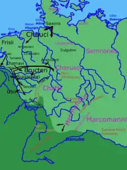 Tacitus je opakovaně zmiňuje, a to zejména v souvislosti s Germanicovými válkami. Byli součástí koalice kmenů cheruského válečníka Arminia, který roku 9 n. l. zničil tři římské legie pod Varovým velením v bitvě v Teutoburském lese.