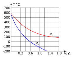 Martenzit je přesycený tuhý roztok uhlíku v železe α. Vysoká tvrdost a pevnost patří mezi jeho základní vlastnosti. Vzniká jako podchlazený tuhý roztok při kalení. Při jeho vzniku dochází k bezdifúzní střihové přeměně a rychlost tvorby zárodků je přibližná rychlosti zvuku v kovech. Vzniká při nadkritické rychlosti ochlazování oceli.