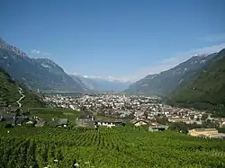 - Martigny-Ville (475 m n. m.), na dně údolí.