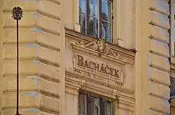 Jmenovka Martina Bacháčka ve štukové kartuši byla umístěna pod okny Národního muzea v Praze spolu s mnoha dalšími, viz Dvaasedmdesát jmen české historie.