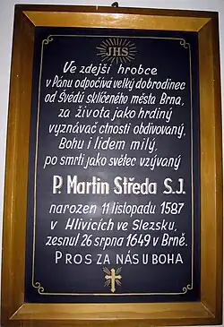 - ↑ Zastavit dělovou kouli. Brno odhalilo sochu jezuitovi, který bránil město před Švédy. ČT24 [online]. Česká televize, 2020-08-15 [cit. 2020-08-16]. Dostupné online.
