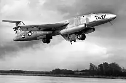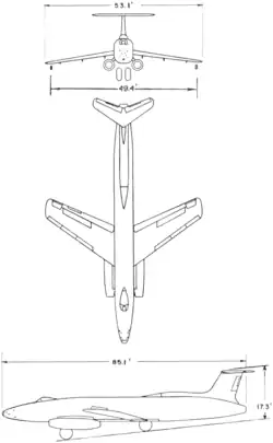 Letoun poháněly tři proudové motory General Electric J47-GE-13. Dva byly podvěšeny na pylonech po stranách trupu a třetí se nacházel v zádi trupu se vstupem vzduchu v kořeni svislé ocasní plochy. V případě potřeby letoun mohl využít i čtyři startovací rakety RATO.[2]