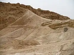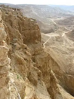 ![]() Masada od západu, v pozadí vlevo Mrtvé moře | |