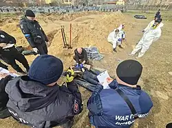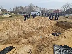 - ↑ Hundreds buried in mass grave in Bucha, near Kyiv: Mayor. www.aljazeera.com [online]. [cit. 2022-04-05]. Dostupné online. (anglicky)