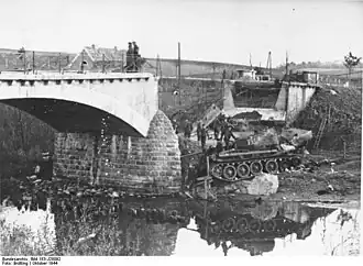 Dne 21. října 1944 se probil druhý prapor 25. gardové tankové brigády sovětské 11. gardové armády přes most ve vsi a vytvořil si předmostí na jejím západním břehu. Wehrmacht se pokusil několikrát o protiútok, ale byl odražen sovětskými tanky a dělostřelectvem. Němci se rozhodli zničit most pomocí náletu. Sovětští vojáci se v rychlosti snažili ukrýt v místním improvizovaném bunkru, kde již ale bylo na 14 německých civilistů. Podle svědectví vyhnali vojáci civilisty ven z bunkru a z blízka všechny zastřelili. Co se dělo následných 48 hodin nikdo přesně neví. Ráno 23. října 1944 získal Wehrmacht kontrolu nad vesnicí zpět. Sověti před odchodem vyhodili betonový most do povětří.