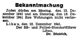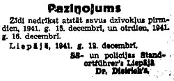 - ↑ a b c Kurzemes Vārds, 5. července 1941, str. 1, na internetové stránce Národní knihovny Lotyšska.. data.lnb.lv [online]. [cit. 2011-09-14]. Dostupné v archivu pořízeném z originálu dne 2018-10-30.
