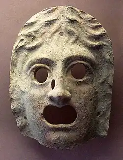 Nejstarší zachované masky sloužily k zakrytí obličeje mrtvého člověka. O smyslu tohoto obyčeje, který zachovávali ještě staří Egypťané, existují různé hypotézy. Podle jedněch měla maska zakrýt rozklad těla a zachovat zemřelému slavnostní vzhled. Podle jiných ho měla chránit před démony, připodobnit jeho předkům a podobně. Ve starém Římě se voskové masky předků (persona) zavěšovaly v domě jako ochrana před démony. Stopou pohřebních masek je posmrtná maska.