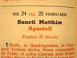 Západní církev slavila svátek svatého Matěje 24. února (v přestupném roce 25. února) a tak si jej dodnes připomínají luterské církve, kdežto v katolické církvi byl svátek od roku 1970 přesunut na 14. květen. Tak jej dnes slaví také anglikánské a episkopální církve. Ve východních církvích se svátek slaví 9. srpna.