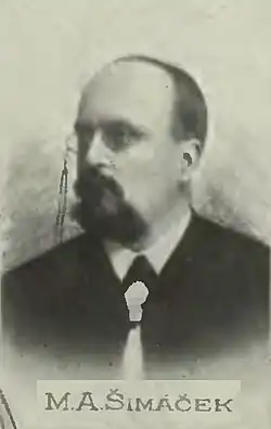 - ↑ VAVROUŠEK, Bohumil; NOVÁK, Arne. Literární atlas československý. Díl 2. Praha: Prometheus, 1938. Kapitola Matěj Anastázia Šimáček, s. 94.