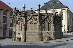 - konstrukce stavení a sochařská výzdoba (znakové štíty, sloupky s vimperky a další) Kamenné kašny v Kutné Hoře