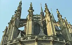 - horní část triforia, ochoz a klenba chóru chrámu svaté Barbory v Kutné Hoře (1489–1506)