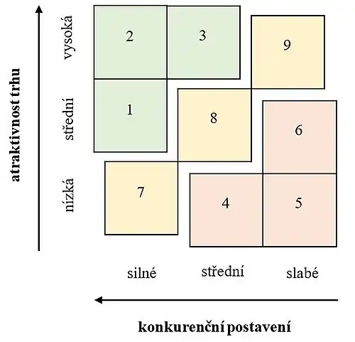 - Tato matice má devět kvadrantů, a to ji dělá sofistikovanější a použitelnější, než je matic BCG, která má jen čtyři kvadranty. [4]