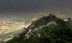 Hrad se nachází na kopci v pohoří Sintra, odkud je panoramatický výhled na obec Sintra a za jasného dne i na Mafru a Ericeiru. Je přístupný ze Santa Maria e São Miguel chráněnou bránou a turniketem nebo silnicí vedoucí k paláci Pena. Hrad je součástí přírodního parku Sintra-Cascais a nachází se na severním úbočí pohoří Sintra, kde svahy mají sklon maximálně 40 %. Serra da Sintra, jak se kopci říká, je sopečného původu a vyskytují se zde žula, syenit, gabro a dioritové skalní útvary.