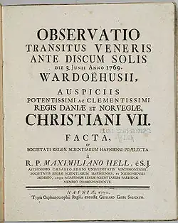 - ↑ 300th anniversary of the birth of Maximilian Hell [online]. Národná banka Slovenska, 2020 [cit. 2023-04-20]. Dostupné online.