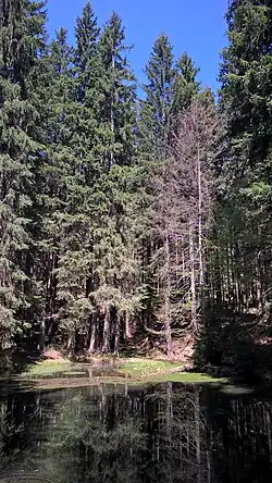 Okolí jezírka tvoří les tvořený převážně smrky.[1]