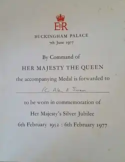 - ↑ a b c d CANADA, Veterans Affairs. Queen Elizabeth II Silver Jubilee Medal (1977) - Veterans Affairs Canada. www.veterans.gc.ca [online]. 2020-01-21 [cit. 2021-04-27]. Dostupné online.