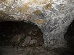 Grafitová žíla v jeskyni/lomu na pravém břehu -