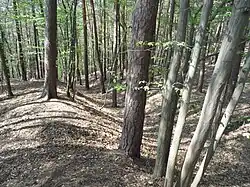 - Slovanské hradiště (název na mapě): po dalších asi 350 metrech se rozkládá třetí lokalita, která je nejblíže obci Třebonín (v seznamu památek je však také evidována pod obcí Lomec). Asi Výšinné opevněné sídliště - hradiště Hrádek, archeologické stopy, ostroh západně od Třebonína, Lomec, číslo rejstříku ÚSKP zřejmě 28809/2-1271.[6]